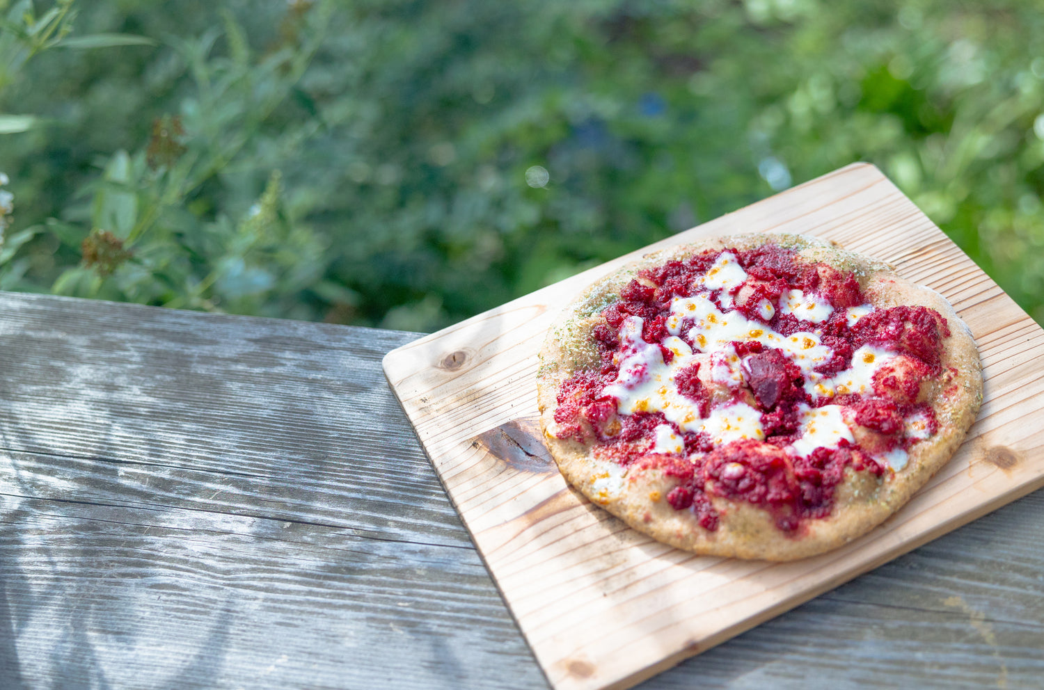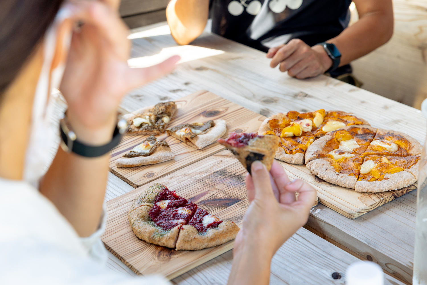 採れたて野菜のソースと、スペルト小麦全粒粉100%の生地で、最高に美味しくて、からだにやさしいピザをつくりました。